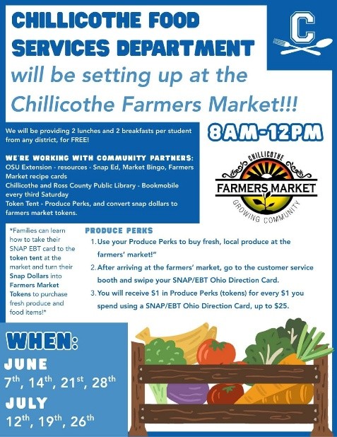 Chillicothe City Schools Food Service Department’s flyer advertising their presence at the local farmers market.