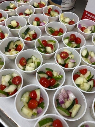 Sample cups of East Cleveland’s tomato cucumber salad.