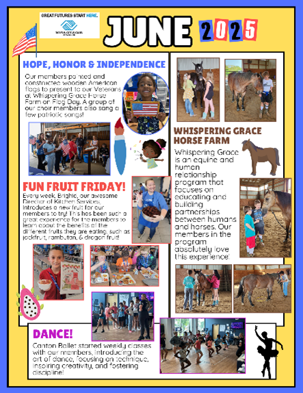 Boys and Girls Club of Massillon uses summer programming to support healthy lifestyles. This summer, menus featured products from 3-D Meats, a local butcher. Members participated in the Cucumber Crunch twice, featured strawberries they picked themselves from Sunny Slope Orchard in Program meals. These activities were featured on social media and a monthly newsletter to keep members and families updated.